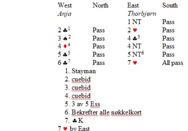 På spillet nedenfor var det kun 2 av 12 par som klarte å melde storeslemmen.